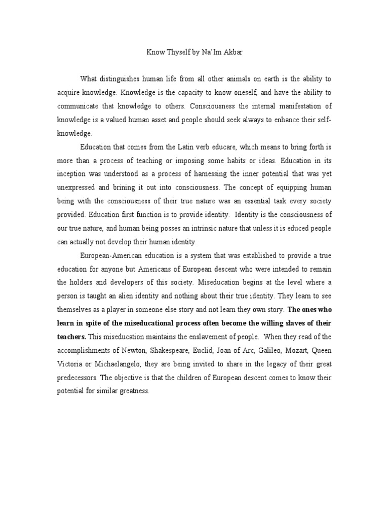 Know Thyself By Na Im Akbar Pdf